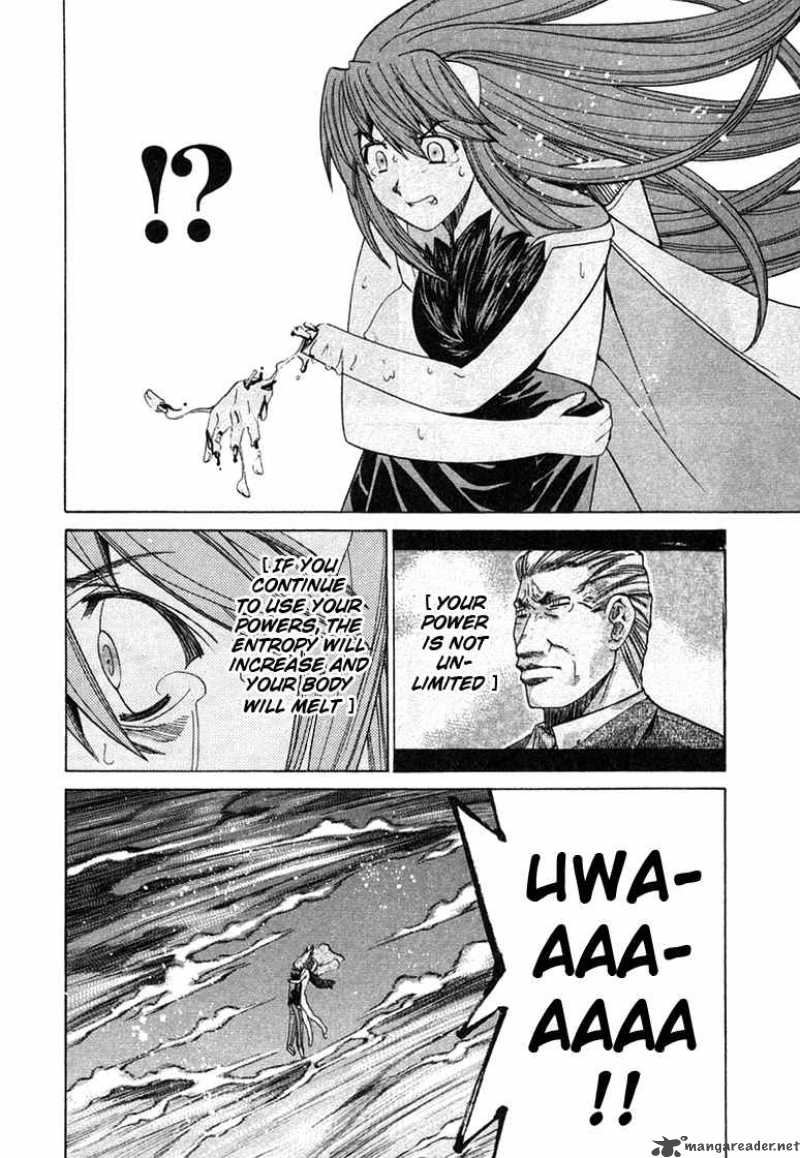 Lucy holds Kouta in her arms and vows to crush the entire world in revenge for her pain, but as her power begins to rise even further, her left hand melts off at the wrist, causing her to remember Kakuzawa's warning about overusing her vectors. She cries out in a combination of frustration, rage, and agony.