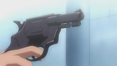 Chapters 43 and 46 - A powerful handgun, likely the SIG-Sauer P220, used by Chief Kakuzawa to shoot and wound Arakawa, to force her to reveal information about his son's death and press her into his service.